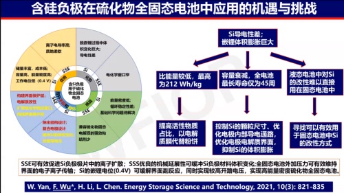 在實(shí)現(xiàn)全固態(tài)電池的聚合物、氧化物、硫化物三條技術(shù)路線中,硫化物固體電解質(zhì)由于擁有最高的鋰離子電導(dǎo)率和良好的機(jī)械性能而成為最有潛力的技術(shù)方向之一。中科院物理所的吳凡研究員分別從硫化物全固態(tài)電池的國內(nèi)外發(fā)展現(xiàn)狀、面臨的關(guān)鍵基礎(chǔ)科學(xué)問題(材料→界面→電芯)、研究成果(新型硫化物)、以及含硅負(fù)極在硫化物固態(tài)電池應(yīng)用等不同方面介紹了硫化物固態(tài)電解質(zhì)的研究進(jìn)展。滿滿的干貨,以下是部分精彩內(nèi)容。