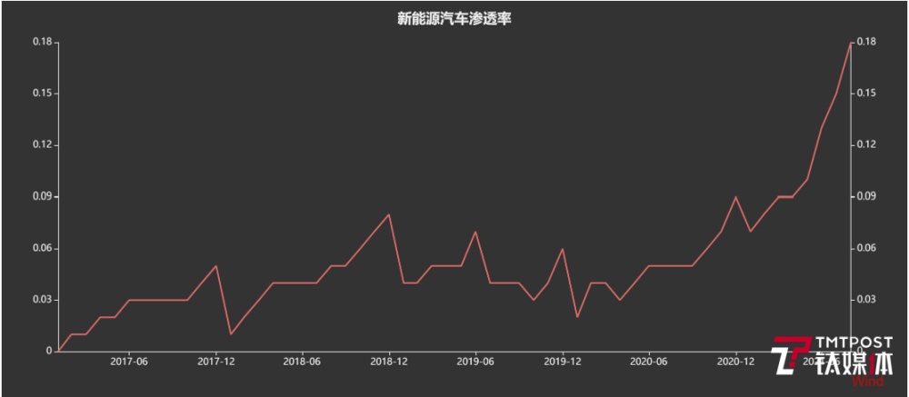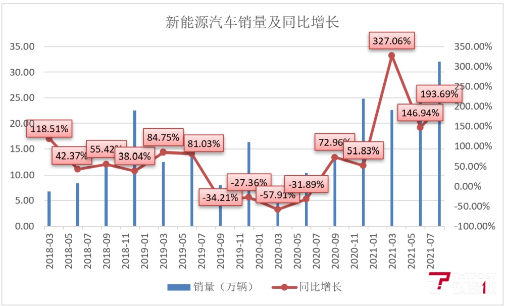 這個得從行業發展空間以及寧德時代在行業中地位如何來進行判斷,從行業發展空間來看,動力電池行業未來的增速取決于下游新能源汽車行業的增速,國內新能源汽車銷量從2020年下半年以來銷量保持高速增長,2021年8月銷量達到32.1萬輛,同比增長193.69%,新能源汽車滲透率2021年8月達到18%,2021年前8個月新能源汽車滲透率達到10.79%,新能源汽車滲透率呈現加速上升的趨勢,2016年到2020年底新能源汽車滲透率從1%上升至不到6%,2021年前8個月滲透率達到10.79%,未來一段時間內新能源汽車滲透率仍然會呈現出加速上漲的趨勢。