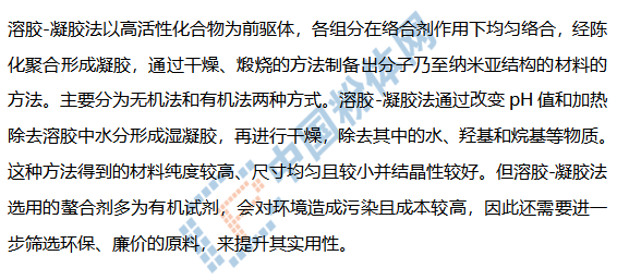水熱法是將金屬鹽溶液和沉淀劑或絡合劑混合均勻,于高溫高壓下在反應釜中反應一段時間得到前驅體或混合物,再經過燒結得到所制備材料的一種方法。水熱法制備過程簡單,合成的材料均勻性好、結晶度高,但需要對反應釜內的原料、沉淀劑和溶液體積等變量進行嚴格控制。水熱法對反應釜的耐高壓性能有較高的要求,在一定程度上增加了反應成本,并且其大規模產業化也有一定難度。