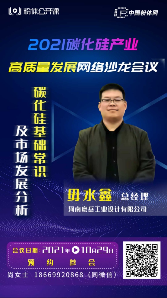 同時利用其耐腐蝕性耐熱性能好,碳化硅材料也被應用于機械密封。總之,近年來碳化硅市場越來越火,充分說明了碳化硅的獨特之處。為進一步探討碳化硅未來發展方向,加強碳化硅技術交流,提升碳化硅精加工水平,促進碳化硅產業高質量發展,中國粉體網旗下粉體公開課平臺將于2021年10月29日舉辦“2021碳化硅產業高質量發展網絡沙龍會議”,為從業人員提供一個足不出戶便能聆聽精彩報告的學習交流平臺。屆時,來自河南磨岳工業設計有限公司的毋水鑫總經理將帶來題為《碳化硅基礎常識及市場發展分析》的報告,毋總將在報告中介紹、分析碳化硅基本性能,并對碳化硅在磨料、耐火材料、碳化硅陶瓷制品、碳化硅晶圓等應用方向進行淺析交流,同時對今年碳化硅市場波動及未來碳化硅行業發展進行分析、交流。