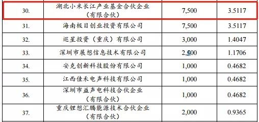 近日,贛鋒鋰業發布《關于控股子公司贛鋒鋰電增資擴股事宜的進展公告》。公告顯示,湖北小米長江產業基金合伙企業(有限合伙)是贛鋒鋰電的第30大股東,認繳注冊資本7500萬元,持股比例3.5117%。