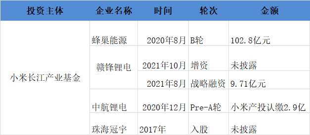 據了解,贛鋒鋰電是小米產投投資的第4家鋰電池企業,之前的3家分別是珠海冠宇、蜂巢能源、中航鋰電。