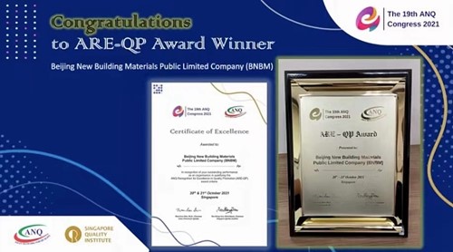 北新建材2021年“亞洲質(zhì)量卓越獎”圖片來源:中國建材報