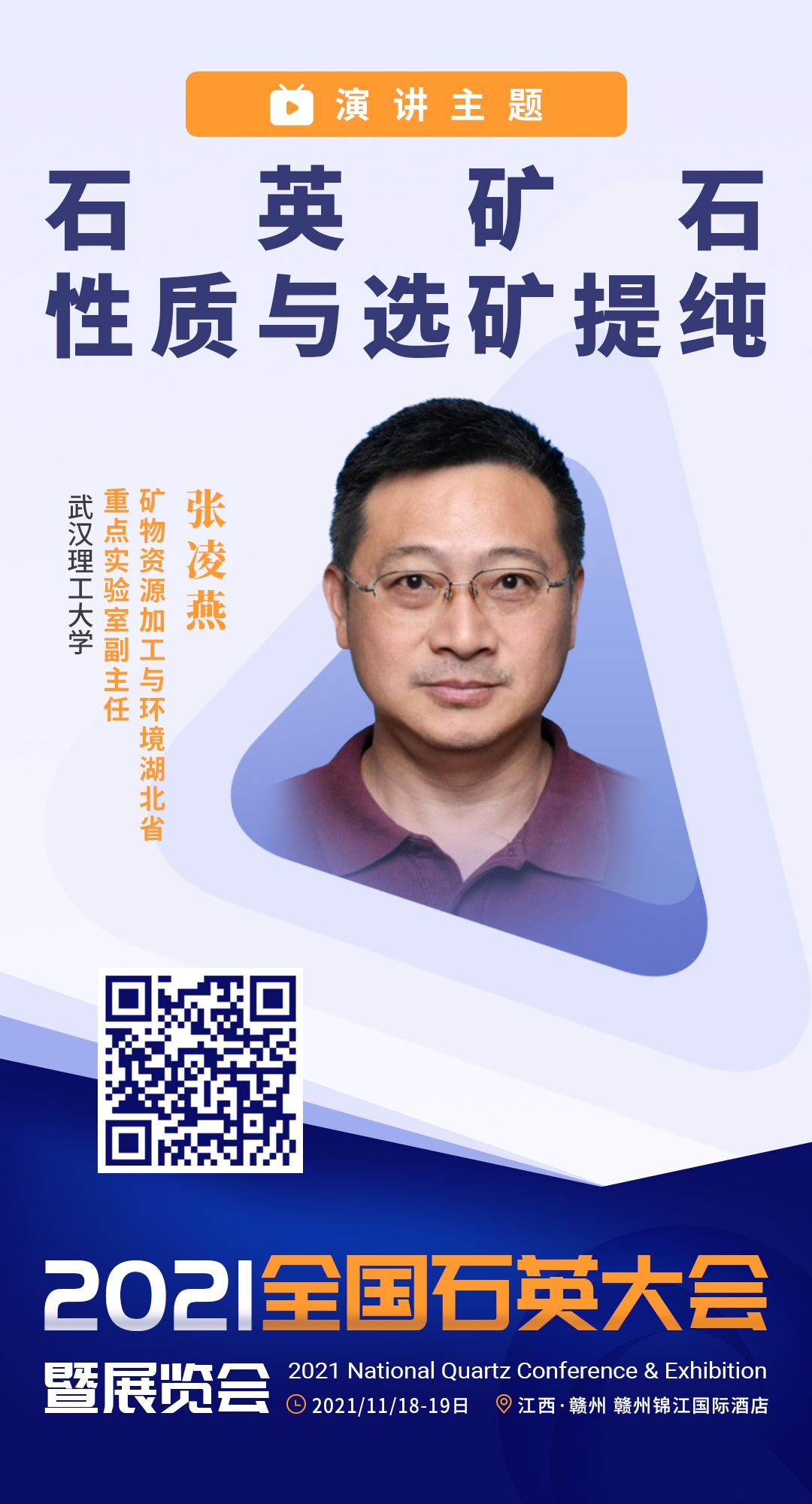 2021年11月18-19日,由中國粉體網主辦的“2021(第五屆)全國石英大會暨展覽會”將于江西贛州錦江國際酒店舉辦,屆時將邀請來自武漢理工大學礦物資源加工與環境湖北省重點實驗室副主任張凌燕作《石英礦石性質與選礦提純》報告。張凌燕教授將全面介紹石英礦石(資源)向石英原料或石英材料加工或轉化過程中礦石的類型、雜質組成、包裹體狀況與選礦、提純工藝的關聯關系和選擇,為科學、精準地開展選礦與提純工作提供基礎和依據,達到高效選礦提純獲得高質量石英原料的目的。