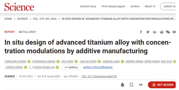近日,據中國科學院消息,中國工程院外籍院士、香港城市大學教授劉錦川團隊創造性地提出了一種3D打印策略,通過調控熔池中不同粉末的混合程度,研發出一種高強度、高塑性的鈦合金。相關研究成果日前發表于《科學》。