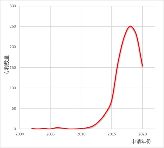 圖3:中國鈉離子電池專利申請數(shù)量趨勢(截至2021年前)
