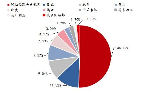 從出口目的地來看,2021年1-10月中國氧化鋁出口主要流向阿拉伯聯合酋長國、日本、韓國、荷蘭、印度、越南等。其中,阿拉伯聯合酋長國、日本及韓國為氧化鋁出口目的地前三甲。