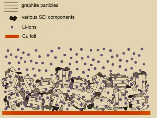 石墨表面的不規(guī)則SEI膜(來源:科袖網(wǎng))
