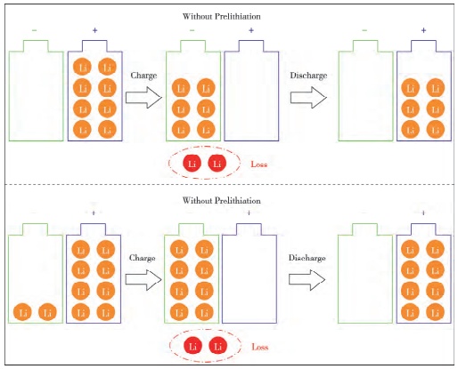 預(yù)鋰化,也被稱為預(yù)嵌鋰,描述的是在鋰離子電池工作之前向電池內(nèi)部增加鋰來補(bǔ)充鋰離子。