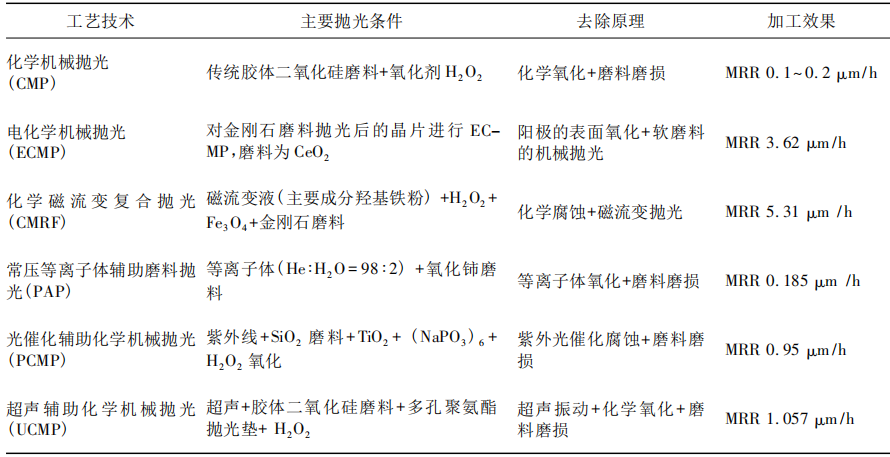 碳化硅晶片的拋光工藝可分為粗拋和精拋。粗拋為機械拋光,目的在于提高拋光的加工效率,其關鍵研究方向在于優化工藝參數,改善晶片表面粗糙度,提高材料去除率。精拋為單面拋光,作為單晶襯底加工的最后一道工藝,化學機械拋光是實現碳化硅襯底全局平坦化的常用方法,也是保證被加工表面實現超光滑、無缺陷損傷的關鍵工藝。