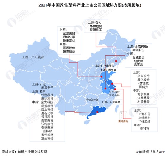 從國內改性塑料產能來看,國內企業占75.3%,國外或合資企業占比約24.7%。國內大型改性塑料生產企業包括金發科技、普利特、中國鑫達、銀禧科技、國恩股份、道恩股份、南京聚隆等,其中金發科技是國內改性塑料產量最大的企業,2020年實現產量128.9萬噸,約占國內市場份額的7.7%。改性塑料行業企業分布也存在一定的區域性,主要是由于汽車、家電等下游生產企業具有顯著的區域性特征,國內改性塑料生產企業主要集中在長三角和珠三角地區。