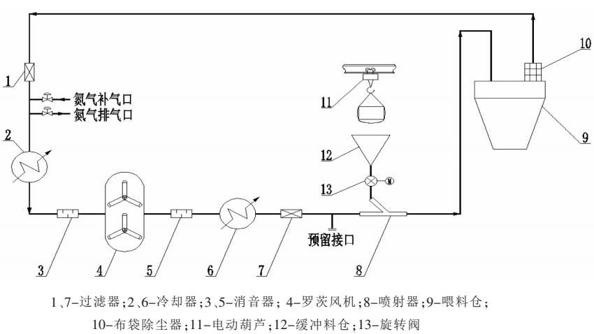 (1)正壓氣力輸送設備以前在電廠輸灰裝置中應用較多,其密閉輸送、易于布局等特點以及近年來國家對環保的要求促使其在化工行業逐步得到推廣應用,在聚烯烴粉體輸送等方面已經有較多的應用實例。