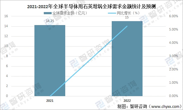 2021-2022年全球半導體用石英坩堝全球需求金額統計及預測