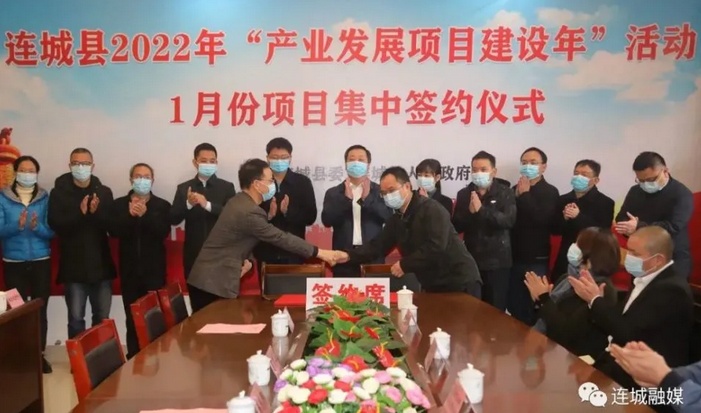 中國粉體網訊 1月25日,連城縣在縣投資促進中心舉行2022年1月份項目集中簽約儀式,成功簽約4個項目,總投資15.4億元,項目均為生產性項目,涉及該縣重點培育的光電、礦冶、建材等產業。連城縣委書記詹崇仁,縣委副書記、縣長蔡東陽,縣委常委、統戰部長邱筱平,縣委常委、副縣長李懿,有關鄉(鎮)、部門負責人,項目投資客商等參加簽約儀式。