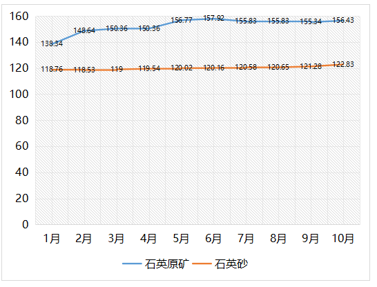 2021年1-10月石英砂、石英原礦價格指數走勢圖