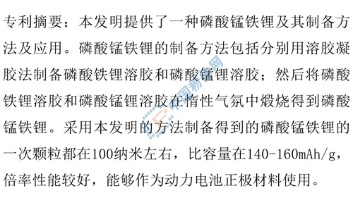 (2)公司于2017年7月7日公開“一種磷酸錳鐵鋰類材料及其制備方法以及電池漿料和正極與鋰電池”專利。