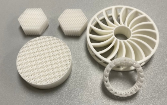 目前,沈陽自動化所擁有了國內先進的陶瓷增材制造能力,具備高精度成型的立體光刻工藝、材料熱重分析儀器、溫控精準的1700度高溫電爐和真空脫脂爐等設備,能夠形成一條基于數字光固化成型的陶瓷產品制備的工藝鏈,自主研發和設計不同復雜形狀的陶瓷零件。