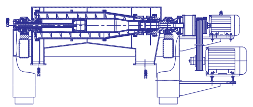 當尾泥懸浮液進入離心機轉鼓腔后,被高速旋轉的轉鼓 帶動一起高速旋轉,因而懸浮液將受到強大的離心力作用。 懸浮液中的固相顆粒由于比重大,所受離心力也較大,因此 固相貼近于鼓壁,形成料環層,而液相密度小,所受離心力 亦小,在固環層內側形成液環層。由于螺旋刮刀與轉鼓的轉 速不同(螺旋滯后),因此螺旋刮刀將沉積在轉鼓內壁的固 相推向轉鼓小端渣口排出,而液相則從轉鼓大端的溢流口排出。