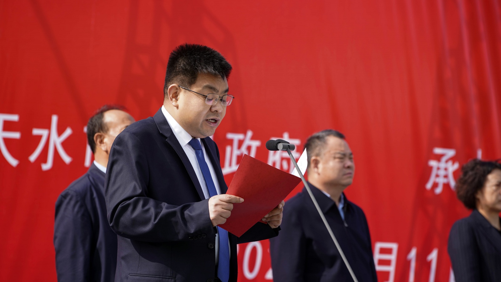 天水市市長王國先、杰瑞股份董事長王坤曉、甘肅省工信廳副廳長陶英平、甘谷縣委書記吳健、縣長孫忠平、杰瑞新能源總經(jīng)理蔡孝井等領(lǐng)導(dǎo)出席開工儀式并剪彩。