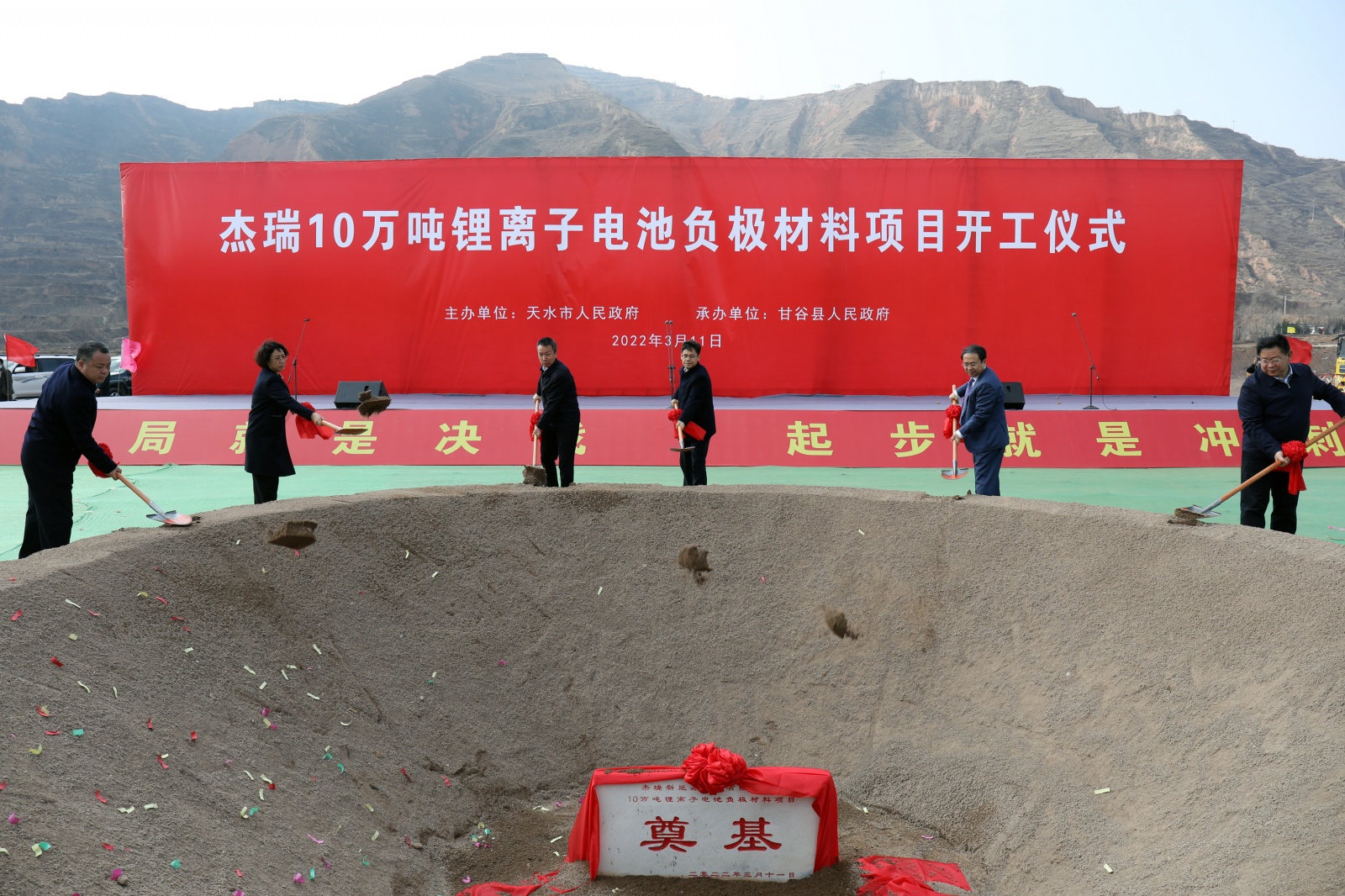 中國粉體網(wǎng)訊 3月11日,杰瑞新能源科技有限公司在甘肅省天水市甘谷縣舉行年產(chǎn)10萬噸鋰離子電池負(fù)極材料項(xiàng)目開工儀式。該項(xiàng)目是杰瑞布局的鋰離子電池負(fù)極材料一體化戰(zhàn)略基地,也是杰瑞完善油氣和新能源雙主業(yè)戰(zhàn)略布局的重要舉措,項(xiàng)目的正式開工標(biāo)志著杰瑞在新能源賽道上加速起跑。