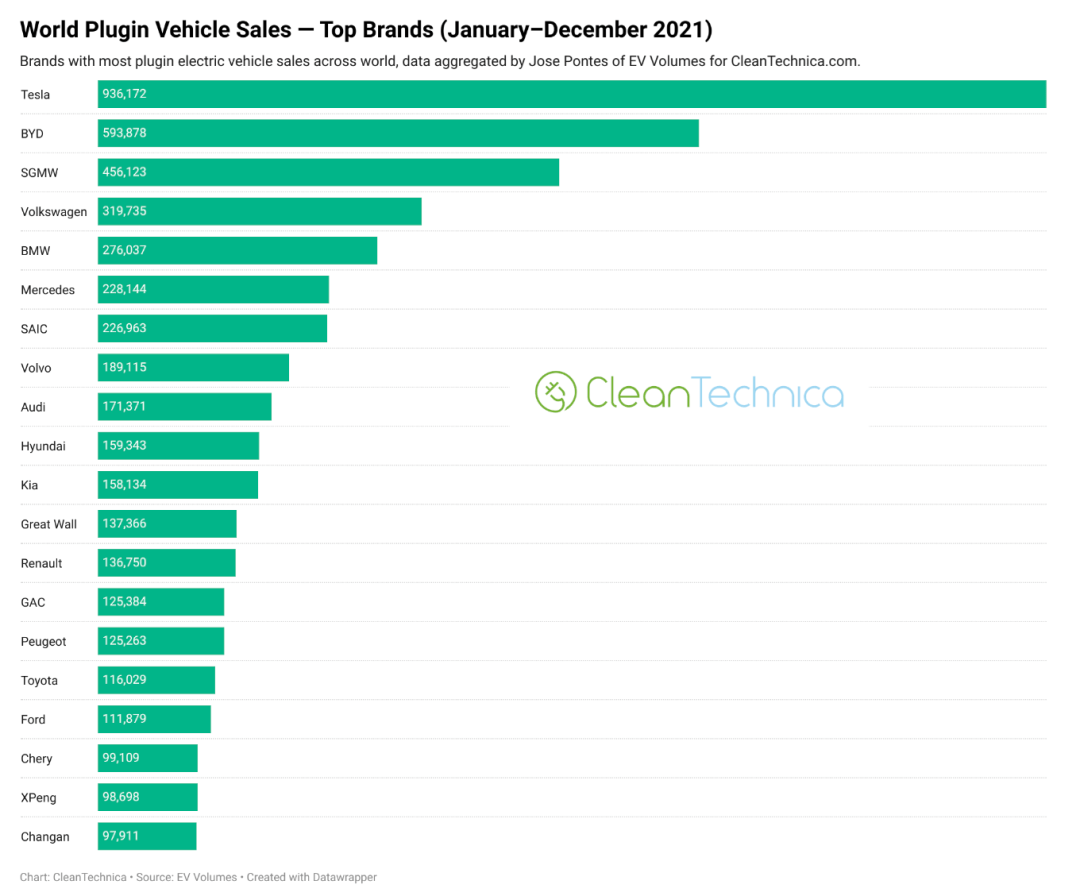 中國粉體網訊 2021年全球電動汽車銷售排行榜的前20名中,日本企業只有豐田一家上榜,排在了第16位。2021年全年,在燃油車時代橫掃全球的豐田,在全球也只賣出了11萬輛電動汽車,這個成績比我國的蔚小理等新能源車品牌高不了太多,只占到全球650萬輛電動汽車銷量的約1.7%。