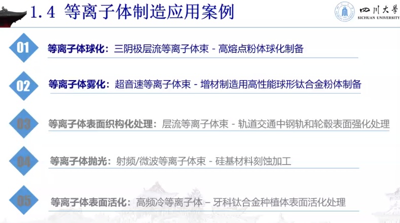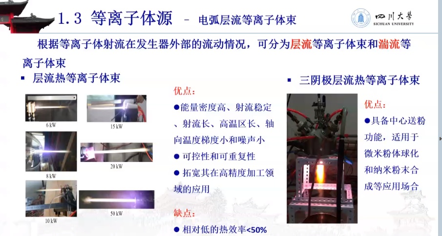 目前已掌握的等離子體源技術(shù)有:電弧層流等離子體束、超音速等離子體束、水蒸氣等離子體束、射頻熱等離子體束、微波冷等離子體束、高壓交流冷等離子體源等。應(yīng)用案例如下圖所示,關(guān)于等離子體球化、等離子體霧化的應(yīng)用案例,余教授做了具體分析。