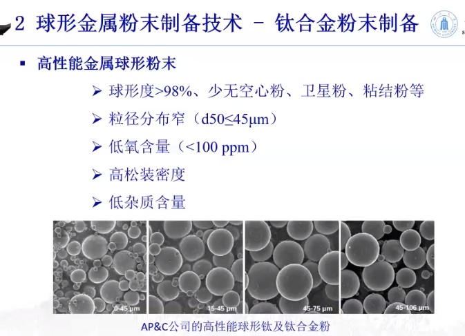 接下來,余德平教授以鈦合金粉末為例,詳細講解了球形金屬粉末的幾種制備技術(shù),主要包括真空感應(yīng)氣體霧化(VIGA)、電極感應(yīng)氣體霧化(EIGA)、等離子旋轉(zhuǎn)電極霧化(PREP)、絲材等離子炬霧化(PA)。