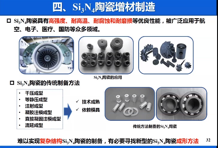 最后,吳老師從技術(shù)、原理、分類等多方面詳細介紹了生物陶瓷增材制造、陶瓷型芯用硅基陶瓷增材制造、氮化硅陶瓷增材制造、微波陶瓷增材制造。
