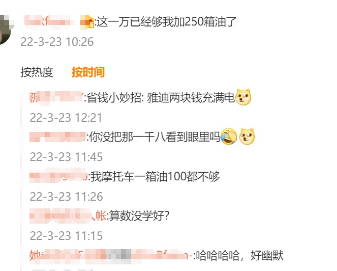 也有的調侃說,這1萬夠加250箱油了。
