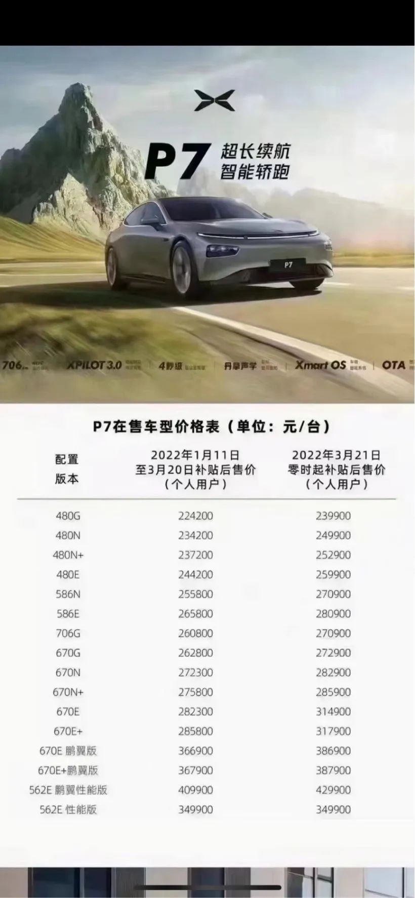 此前,小鵬汽車已全面漲價,三款主力車型均在漲價之列。
