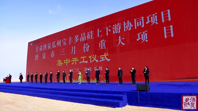 3月20日上午,甘肅酒泉瓜州寶豐多晶硅上下游協同項目暨全市三月份重大項目集中開工儀式在瓜州縣舉行。甘肅酒泉瓜州寶豐多晶硅上下游協同項目總投資200億元,年度計劃投資100億元以上。當天在瓜州主會場開工建設的還有2022年高標準農田、熱源廠以及10萬千瓦風電等20個項目,總投資44.5億元,年度計劃投資34億元。