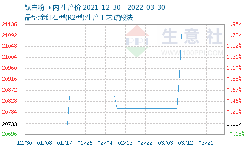 本月國內鈦白粉市場價格繼續維持上漲態勢。國際鈦白粉企業泛能拓、康諾斯等發函宣布將在4月1日上調鈦白粉價格,受此消息影響,3月第二周國內龍企龍佰集團鈦白粉企業的漲價函,隨后攀枝花鈦海科技、江蘇鎮鈦、中核鈦白、山東東佳、濟南裕興、廣西西隴等多家企業發函上調鈦白粉價格。然進入下半月,受到疫情影響,部分地區運輸受阻,鈦白粉庫存開始增加。加之下游需求清淡,原料高位,部分企業開始減產,鈦白粉市場上漲乏力,后勢上漲動力減弱,價格或將保持高位震蕩下調態勢。