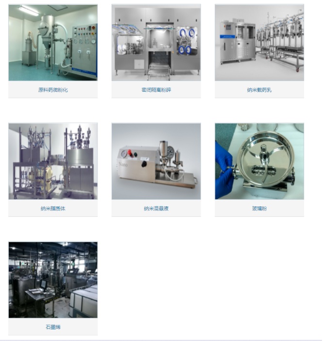 位于上海松江工業(yè)園區(qū)的總部技術(shù)中心建有符合GMP標(biāo)準(zhǔn)潔凈化車間,配備有微射流均質(zhì)機(jī),超微粉氣流粉碎及脂質(zhì)體擠出器等國際先進(jìn)的納微米粉碎和檢測設(shè)備。可對外提供脂肪乳、脂質(zhì)體、納米混懸液、原料藥超微粉從研發(fā)到中試、生產(chǎn)型設(shè)備以及相關(guān)輔助設(shè)備的培訓(xùn)、租賃服務(wù)。