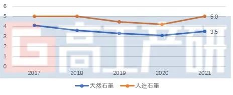 2017-2021年中國負極材料價格走勢(萬元/噸)