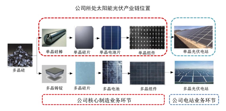 在此基礎上,公司于 2014 年底開始向下游延伸實施一體化戰略轉型,通過積極推廣PERC 電池的規模化量產,引領了行業由常規向 PERC 高效技術的升級,并成功完成了向全球領先高效單晶解決方案提供商的戰略轉型,把單晶多晶電池效率差拉大到3%。