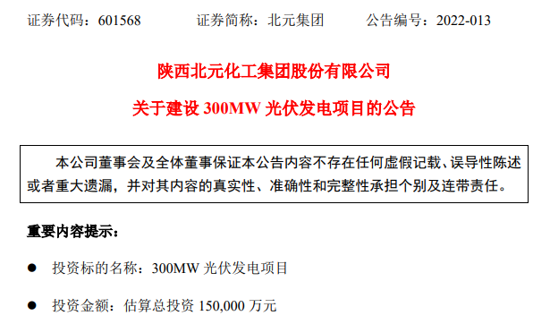 中國粉體網訊  4月20日,北元集團(601568)連續發布公告,擬投資15億建設300MW光伏發電項目、投資3500 萬元建設5.95MW 分布式光伏發電項目。