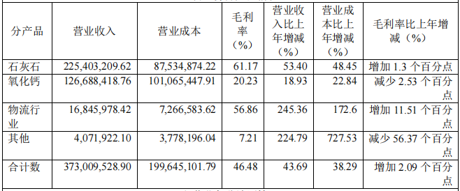 “石灰石”營收貢獻(xiàn)較大