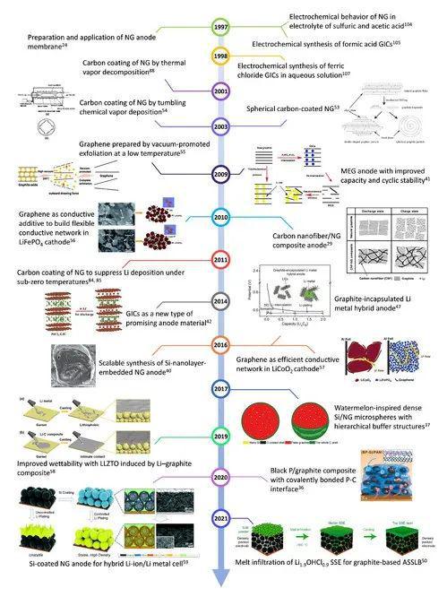 基于此,團隊從多角度概述了天然石墨基負極材料的研究進展,不僅包括天然石墨的結構、性質、電化學性能、改性方法、石墨烯衍生物和復合材料,還涉及了石墨在混合鋰離子/鋰金屬電池和全固態電池中的應用,并提出了下一代天然石墨基高能量密度鋰離子電池的設計策略和發展方向。論文重點總結了團隊在鋰離子電池天然石墨負極材料研究和應用方面取得的開創性研究成果。