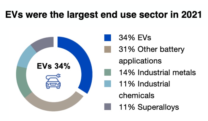 中國粉體網訊 電動汽車 (EV) 去年首次超過智能手機和其他高科技設備,成為鈷需求的主要驅動力,該行業消耗了59000噸電池金屬,占全球總量的34%。