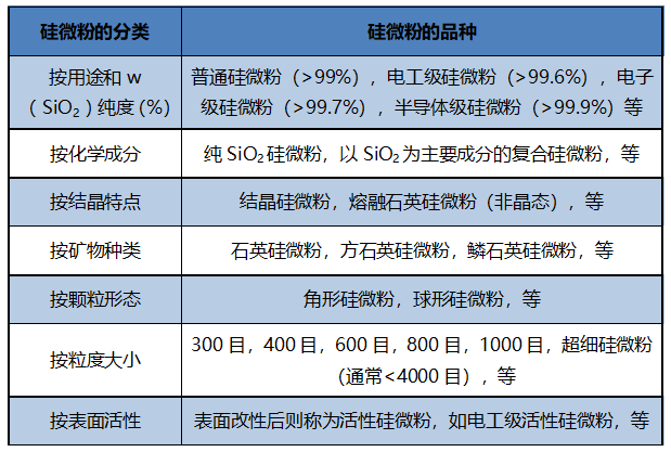 根據國家標準SJ/T10675—2002和多行業共識,硅微粉有多種分類和品種。