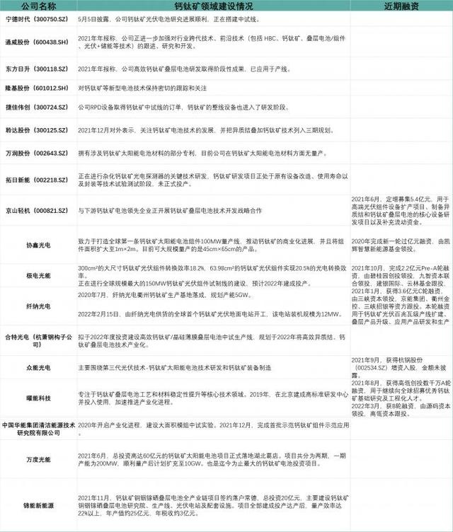 盡管這項頗具前景的電池新技術(shù)尚未進(jìn)入大規(guī)模產(chǎn)業(yè)化的視野,但這條起步階段的賽道其實早已有不少企業(yè)爭相布局,包括協(xié)鑫集團(tuán)、隆基股份、通威股份、晶科能源、天合光能等光伏龍頭企業(yè),以及華能集團(tuán)、金風(fēng)科技等能源企業(yè)。