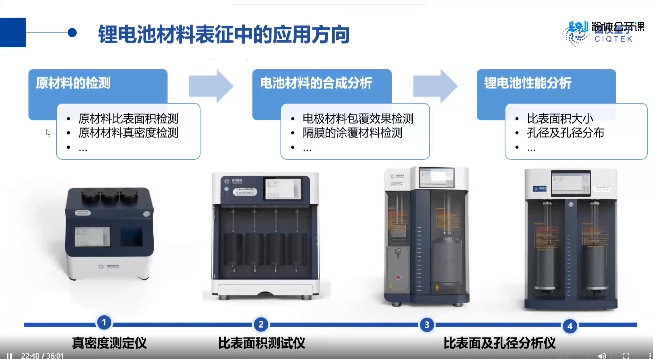 會上,長沙理工大學副教授李靈均、北京國儀精測技術有限公司應用工程師王華強、河北工業大學教授梁廣川先后作《鋰離子電池高鎳正極材料的基礎研究及改性策略》《氣體吸附技術在鋰電材料表征中的應用》《磷酸鐵鋰粉體材料的特性及加工性能》專題報告。