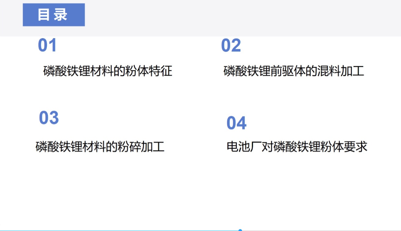梁廣川圍繞磷酸鐵鋰粉體材料的特性及加工性能問題,從磷酸鐵鋰的粉體特征、磷酸鐵鋰前驅體的混料加工、磷酸鐵鋰材料的粉碎加工、電池廠對磷酸鐵鋰粉體的要求四個方面進行了講解。磷酸鐵鋰材料是橄欖石晶體結構,最常用的合成方法是水熱法和固相法。梁廣川在報告中講解了液相法、固相法合成的磷酸鐵鋰,以及磷酸鐵鋰粉體的常見特征參數。對于磷酸鐵鋰前驅體的混料加工,他介紹了固相法的生產工藝以及粉體工程的控制因素。在磷酸鐵鋰的粉碎加工方面,他分別就氣流粉碎機結構、燒結工藝控制、粉碎工藝控制以及磷酸鐵鋰粉碎的要求進行講解。最后,他介紹了電池廠對磷酸鐵鋰粉體的要求,包括一致性好、導電率高、制漿涂布過程不易團聚、極片表面光滑、不易吸潮、壓實密度高。