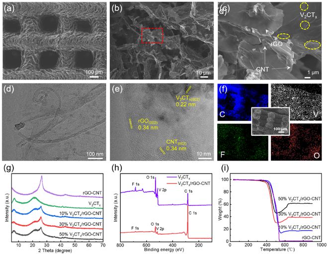 圖2V2CTx/rGO-CNT的形貌和結構表征