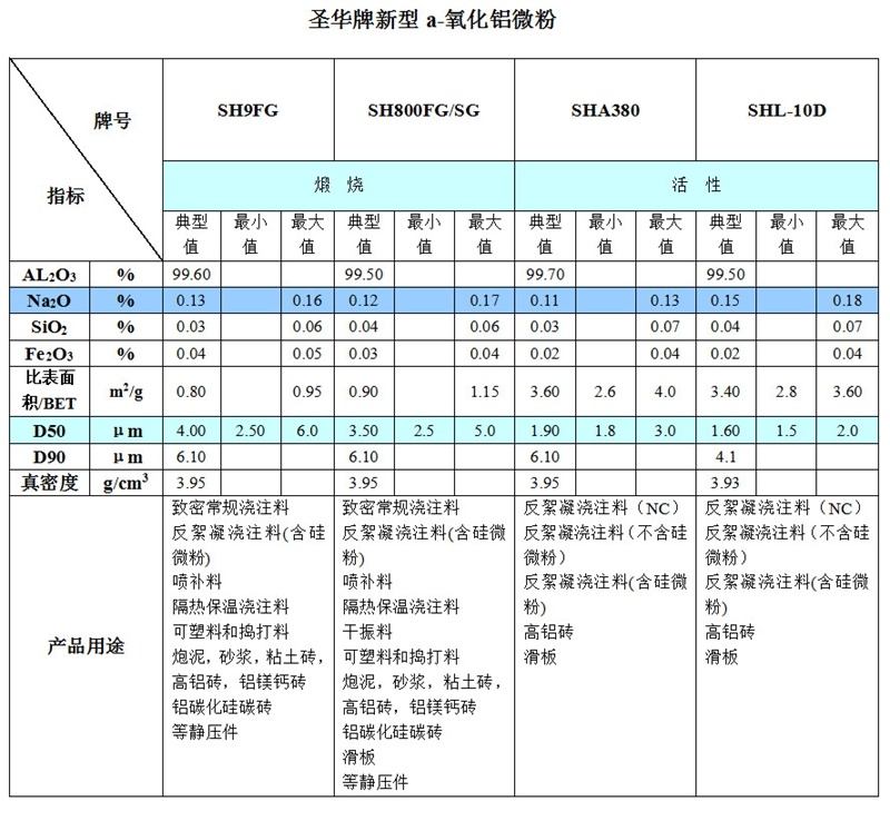 1、圣華牌SHM中鈉系列氧化鋁微粉