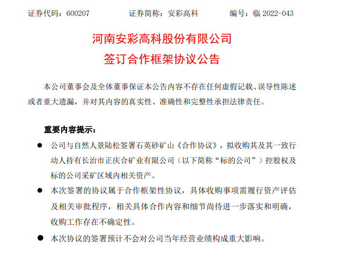 參考來源:證券時報、安彩高科關于簽訂框架協議的公告
