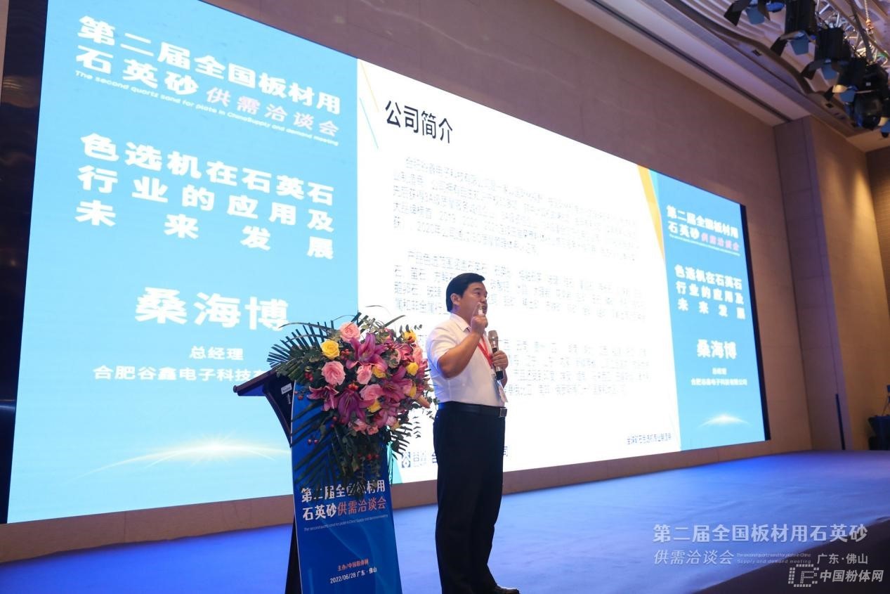 合肥谷鑫電子科技有限公司總經理桑海博作《色選機在石英石行業的應用及未來發展》報告