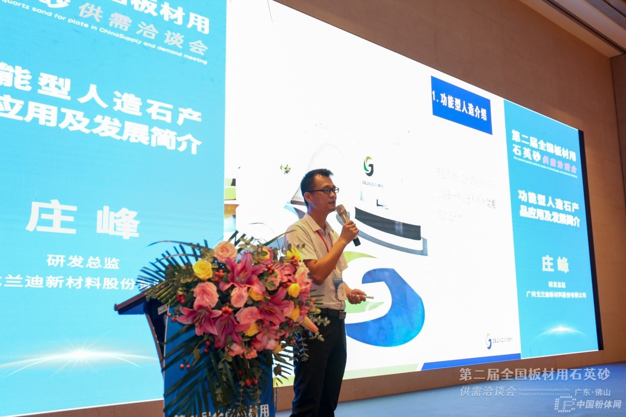 廣州戈蘭迪新材料股份有限公司研發總監莊峰作《功能型人造石產品應用及發展簡介》報告