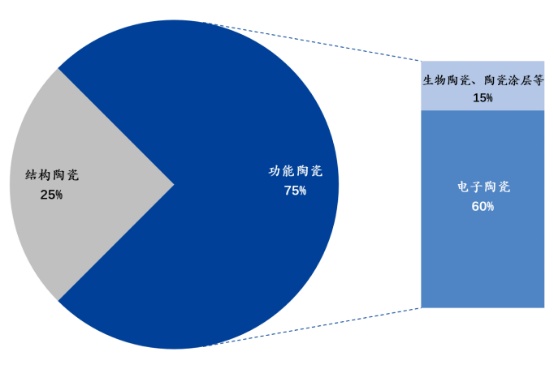 中國粉體網訊 先進陶瓷是新材料產業的重要分支,結構陶瓷、功能陶瓷等領域均在快速拓展。其中,功能陶瓷占先進陶瓷比例約為 75%,而電子陶瓷占功能陶瓷的80%。受益市場需求增長和政策紅利,電子陶瓷市場規模穩步增長。