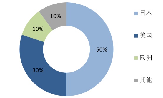 從技術創新看,電子陶瓷材料的關鍵核心制備技術仍由歐美、日、韓廠商掌控。從市場份額看,日本企業生產的電子陶瓷種類最多、綜合性能最優、應用領域最廣、產量最大,在世界電子陶瓷市場占有率遙遙領先(約占50%份額);美國電子陶瓷產業化發展進程略慢于日本,約占全球電子陶瓷市場份額的30%,位居第2 ;歐盟方面則比較重視節能環保型的電子陶瓷材料的開發,其電子陶瓷占比約為全球份額的10%。